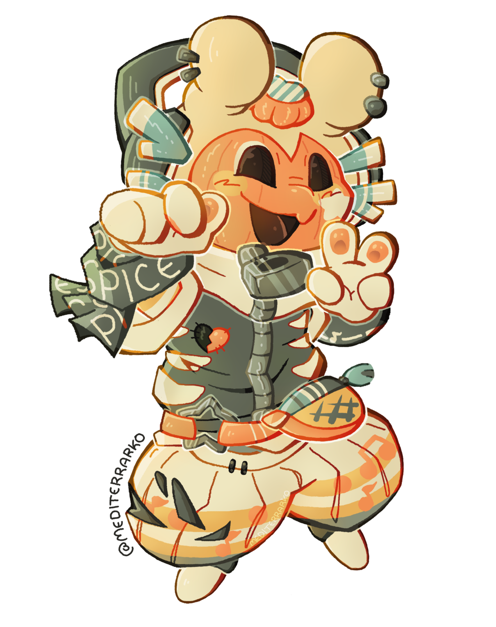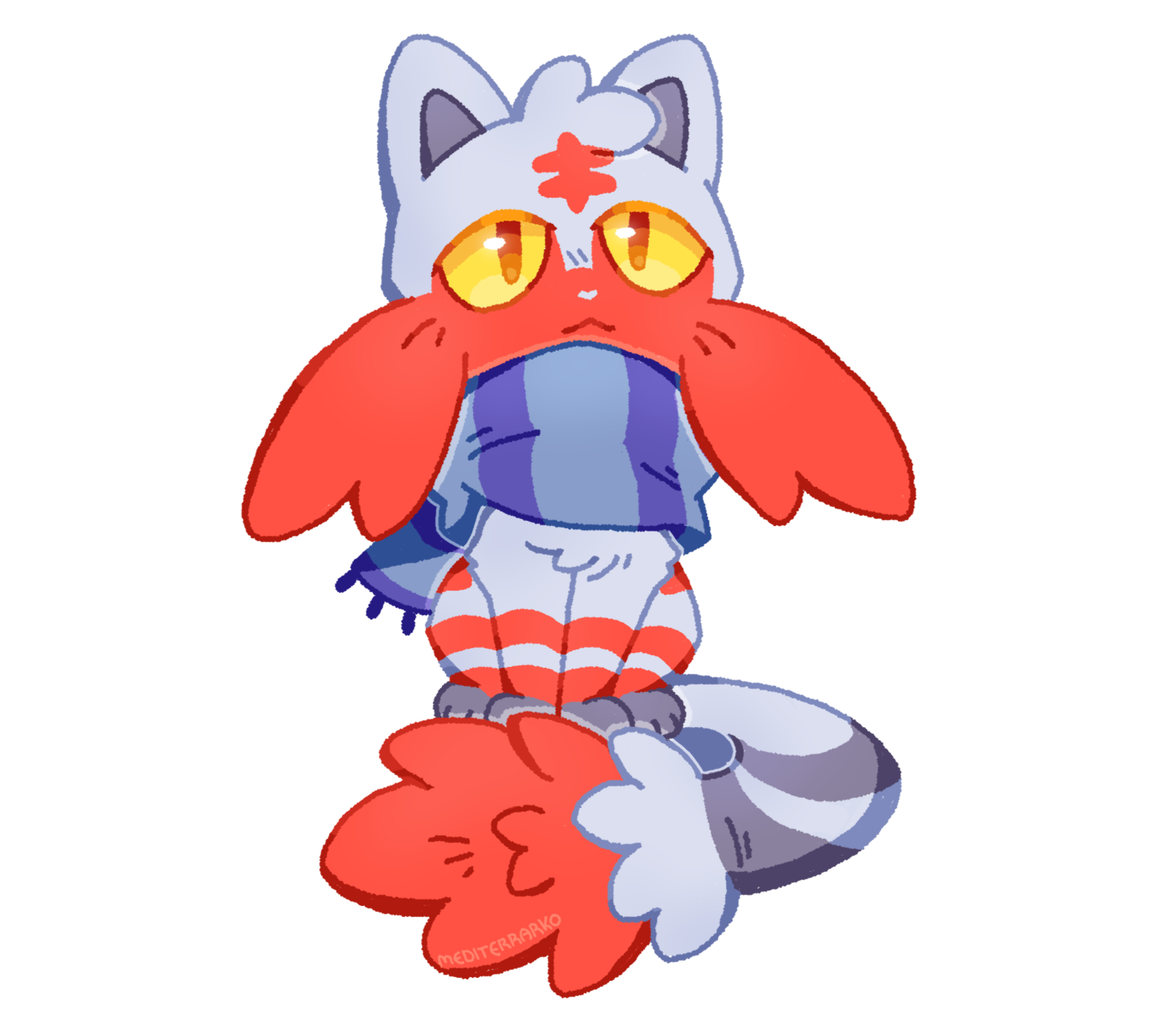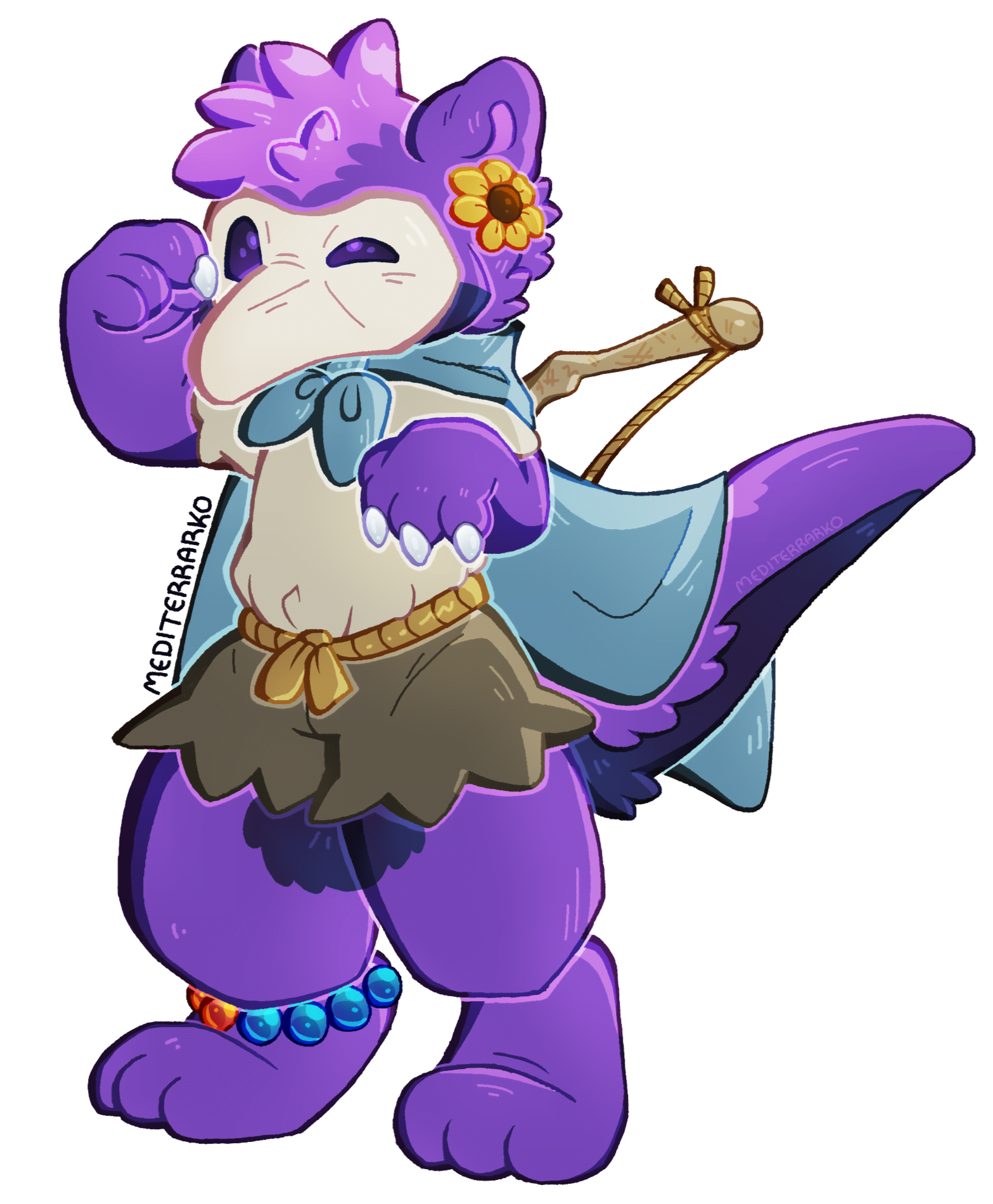 Includes the color palette, as well as the name and information about the character (i.e. Pronouns, species, conditions, ethnicity, etc.)